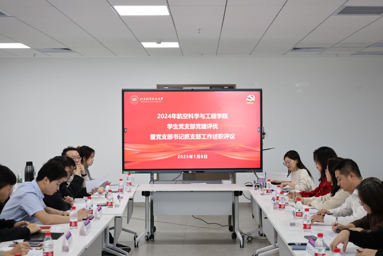 (通讯员 杨锐 周岳)2025年1月8日,航空科学与工程学院在沙河校区科研二号楼组织召开2024年度学生党支部党建评优暨党支部书记抓支部工作述职评议大会。学院党委副书记、专兼职辅导员、学生党支部书记等40余人参会,物理学院专职组织员蔡红艳老师列席。