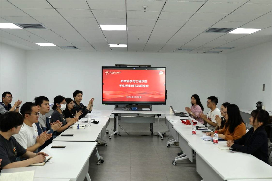 (通讯员 谌茜 都仁)2025年4月16日下午,航空科学与工程学院在沙河校区航空大楼720会议室组织召开2025年春季学期第一次学生党支部书记联席会,进一步开展基础党务培训工作。学院专职辅导员杨锐、北航学院守锷书院专职辅导员史荻薇、航空学院负责党建专项的兼职辅导员及全体学生党支部书记参会。
