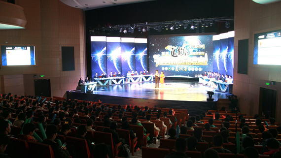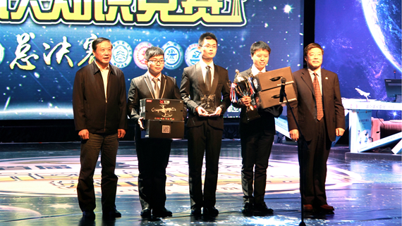 本次总决赛分为“运筹帷幄”、“气贯长虹”、“纵横捭阖”、“巅峰对决”四个环节。面对第一环节“运筹帷幄”的必答题和抢答题,每支代表队都展现出了自己丰富的航空航天知识,表现各有千秋,比分紧追不舍,一时之间难分伯仲。在第二环节“气贯长虹”中,我校代表队表现勇猛,一举遥遥领先,他们的默契配合、精彩回答赢得了全场观众的热烈掌声。第三环节“纵横捭阖”自主选题的赛制使比赛更加扣人心弦,各个代表队排兵布阵、谨慎应对。前三个环节比赛后,西北工业大学代表队和我校代表队比分位列前两名。进入最后一个环节“巅峰对决”,两支代表队轮流答题,你追我赶,互不相让,将比赛气氛推向了高潮。最终,西北工业大学代表队更胜一筹,获得全国总冠军,捧得“飞豹杯”。