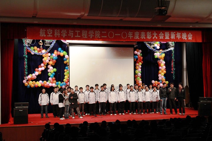 2010年12月26日14:00,航空科学与工程学院2010年年度表彰大会暨新年晚会盛大开幕。出席本次活动的嘉宾有北航校团委书记雷晓锋老师,北航学生工作部副部长苏昊老师。到场的航空学院领导有院长杨超教授,院党委书记林贵平教授,副院长刘沛清教授、关志东教授,研究生指导主任王延奎教授,院副党委书记李广超老师,各位班主任及辅导员也观看了此次晚会。